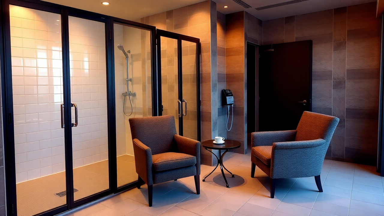 Clean, private restroom and shower facilities, constructed using recycled shipping containers, are provided at all four sites. Designed with both comfort and sustainability in mind, these amenities support hygiene and wellness for drivers on long-distance routes.